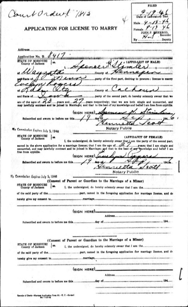 Application for License to Marry
