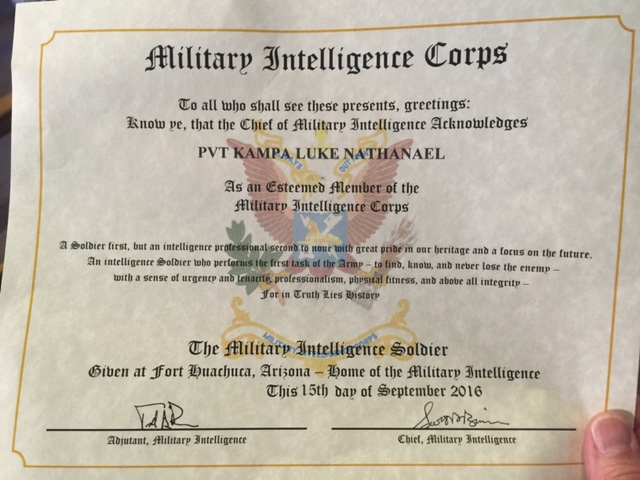 | Notes: | Luke graduated his training at Ft. Huachuca from the Military Intelligence school. He goes on to the Army language school in Monterey, CA to learn Korean. |