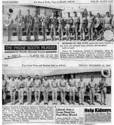 Lisa Jensen remembers that Phil played taps on his trumpet at the cabin at Lake Independence, and when he was finished the neighbors would yell, "Good night, Phil!" He also played Santa at Christmas and would orchestrate the family in singing "The Twelve Days of Christmas." Phil was known for his kindness, wonderful sense of humor and great personality. He was caring, funny, empathetic and devoted to family, an inspired (and sometimes colorful) storyteller, very much loved by his family, friends and neighbors. He had a cat named Ludvig. Between 2000 to 2002 he was living at 4213 Islemont Pl., Minneapolis, Hennepin, Minnesota. His last residence was Robbinsdale, Minnesota. Phil passed away April 21, 2005 in Minnesota at the age of 84. Robert R. Mullally reminisces upon his cousin, Phil: ATTACHED IS A ST. CLOUD, MN, TRIBUNE 1941 ARTICLE ABOUT THE 217TH REGIMENTAL BAND OF THE LOCAL NATIONAL GUARD. PHIL IS 11TH IN THE TOP PHOTO HOLDING HIS TRUMPET. THIS BAND, MADE UP OF MOSTLY ST. CLOUD AREA GUYS, WAS CALLED UP IN LATE 1941 AND SPENT THE REST OF WWII AS THE POST BAND AT THE PRESIDIO IN SAN FRANCISCO. ROUGH DUTY, WHAT! IN AS MUCH AS YOU ARE ON THE SCENE, YOU MIGHT FIND SOME PHOTOS IN THE PRESIDIO ARCHIVES. I "SAT IN" WITH THIS BAND BEFORE THEY WERE CALLED UP BUT WAS ABOUT 5 YEARS TOO YOUNG. I DID PLAY IN THE ST. CLOUD BOYS' BAND WITH MANY OF THEM BEFORE THE WAR AND IN THE ST. CLOUD MUNICIPAL BAND AFTER MY MILITARY SERVICE. PHIL WAS AN OUTSTANDING GUY IN MANY WAYS. HE CONTINUED TO PLAY TRUMPET THE REST OF HIS LIFE. HE WAS VERY ACTIVE IN THE AMERICAN LEGION AND PLAYED TAPS AT MANY MILITARY FUNERALS. YES, HE DID PASS AWAY ON APRIL 21ST, 2005. HIS FUNERAL WILL BE ON MONDAY, MAY 2, 2005. ALL OF MY SIBS, EXCEPT MARY, WILL ATTEND. -- from an April 29, 2005 e-mail |