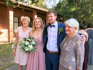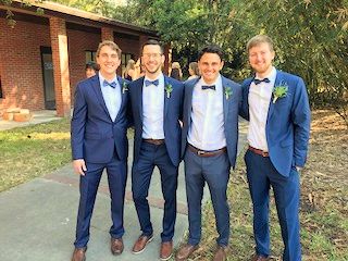 | Christophe on the right with his groomsmen | Kaydie, sister Melanie, Christophe and grandmother Marianna |