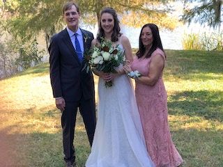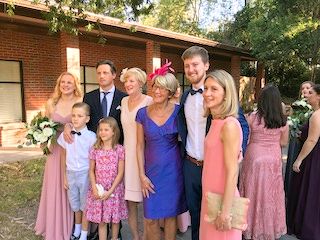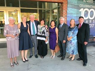 | Alex and her parents, Greg and Susan Von Mering | Kampas left to right: Marianna, Kaydie Vistelle (née Kampa), Dick and Bonnie Kampa, Phuong and Ron, and Suzanne and Mark Kampa before the University of Florida Museum of Natural Science where the reception dinner and dance were held. |